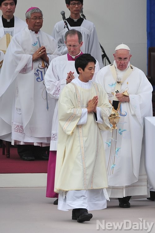 프란치스코 교황이 [성모승천대축일미사]를 15일 오전 10시 45분께 대전월드컵경기장에서 집전 했다. 이 미사는 교황 한국방문 후 처음으로 대중과 봉헌하는 미사이다.