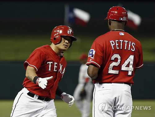 미국 프로야구 텍사스 레인저스의 추신수(32)가 6경기 만에 시즌 12호 홈런을 터뜨렸다.추신수는 17일(한국시간) 미국 텍사스주 알링턴 글로브 라이프 파크에서 열린 미국프로야구 로스앤젤레스 에인절스와의 홈경기에서 4회 말 좌중간 담장을 넘는 솔로포를 쏘아 올렸다.이날 1번 지명타자로 출전한 추신수는 0-5로 뒤지는 4회말 선두타자로 나와 비거리 134m의 솔로 홈런을 쳐내며 팀의 첫 득점을 올렸다.추신수는 7회에도 몸에 맞는 공으로 출루해 홈을 밟았지만 9회말 마지막 타석에서 2루수 땅볼로 잡여 역전 기회를 놓치면서 팀은 4-5로 졌다. 텍사스는 이날 패배로 4연패에 빠졌다.추신수는 4타수 1안타 1타점 2득점을 기록했으며, 타율 2할 4푼 3리, 출루율 3할 4푼 1리를 유지했다.[추신수 12호 홈런, 사진=연합뉴스]