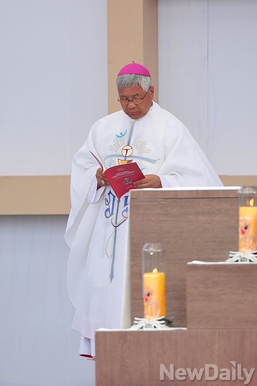 이날 해미읍성이 위치한 서산 지역에 많은 비가 왔으나 미사 시작 전 비가 그쳐 미사를 무사히 봉헌할 수 있었다.