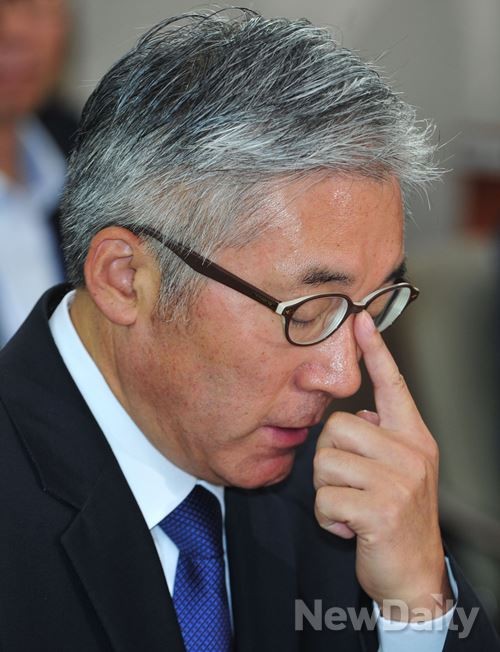 [김종덕] 문화체육관광부 장관 후보자가 19일 오전 여의도 국회 교육문화체육관광위원회 전체회의장에서 열린 인사청문회에서 안경을 만지고 있다.
