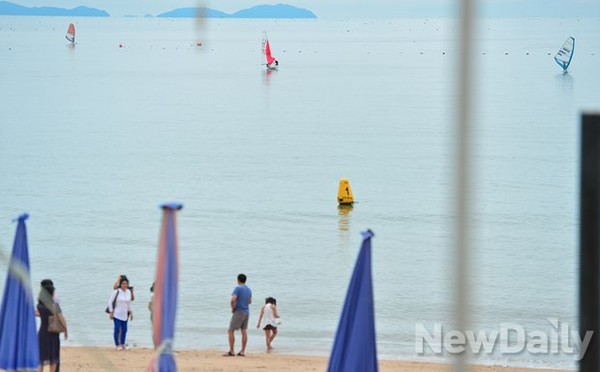인천아시안게임을 31일 앞둔 19일 오후 인천 중구 왕산해수욕장에서 한국 요트 국가대표팀이 훈련을 하고 있다.