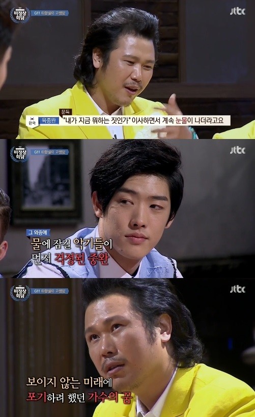육중완이 힘들어서 음악을 포기할 뻔 했던 과거를 회상했다.