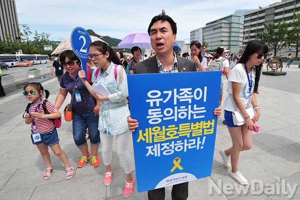 세월호 특별법 강경투쟁에 돌입한 새민련 박영선 원내대표와 의원들이 27일 오후 서울 광화문광장에서 [유가족이 동의하는 세월호 특별법 제정을 촉구]하는 피켓 시위를 벌였다.