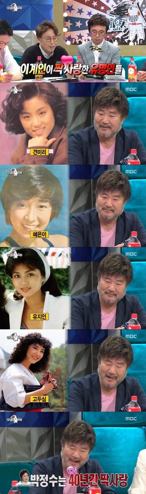 그러면서 이계인은 견미리를 시작으로 혜은이, 유지인, 고두심 등 내로라하는 당대 최고 미녀 배우들을 좋아했다고 고백했다. 심지어 김청은 10년, 박정수는 무려 40년을 좋아했던 것으로 밝혀졌다.