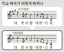 일선 학교에서 부르는 애국가의 음역을 낮춘 것은