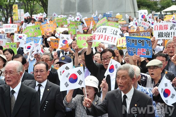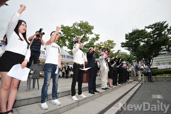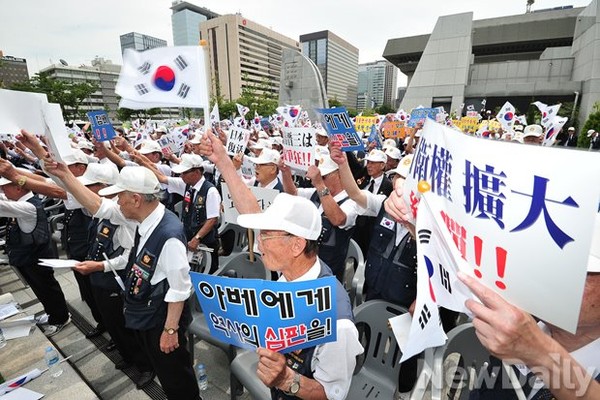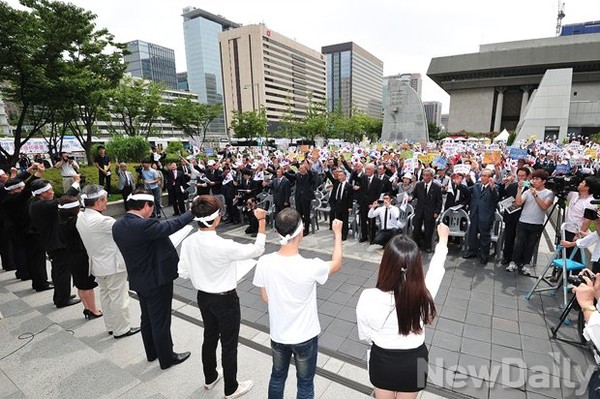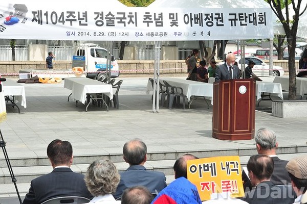 광복회가 [104주년 경술국치(庚戌國恥)일 추념 행사]를 29일 오전 서울 세종로공원 광장에서 열고 집단자위권 확대로 군대 재무장을 도모하려는 일본의 아베정권을 강력히 규탄했다.