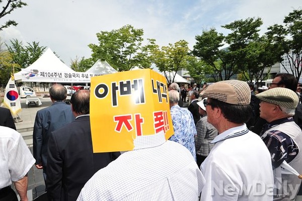 광복회가 [104주년 경술국치(庚戌國恥)일 추념 행사]를 29일 오전 서울 세종로공원 광장에서 열고 집단자위권 확대로 군대 재무장을 도모하려는 일본의 아베정권을 강력히 규탄했다.