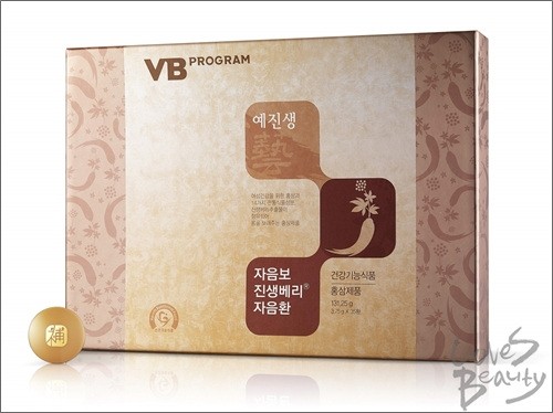 [예진생 진생베리® 자음환]은 여성 건강을 위한 홍삼과 진생베리 추출물, 14가지 전통 식물성분이 여성의 몸을 보해 주는 고품격 홍삼 제품으로, 추석을 맞아 기존 제품에 5환이 추가됐다.적하수오, 황기, 둥글레, 숙지황 등 여성 건강을 위해 이용되던 14가지 전통식물성 원료를 엄선하여 담았으며, 여성 내부의 자음보혈을 통해 내부 순환의 개선을 도와 피부의 윤택함 개선 및 보다 활력 있는 생활을 즐길 수 있다.석류향과 한방 아로마 향으로 한층 부드럽게 섭취할 수 있는 츄어블 환 타입 제품. 가격은 11만 원대(3.75gX30환).▲ VB 예진생 해피키즈 세트