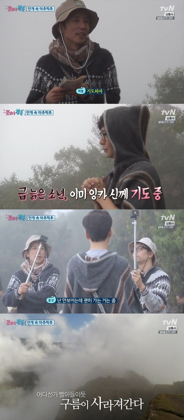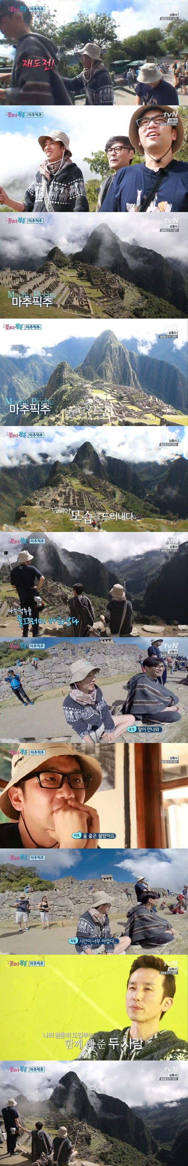 29일 방송된 tvN '꽃보다 청춘'에서는 페루 여행 마지막 날 마추픽추를 마주한 윤상, 유희열, 이적의 모습이 그려졌다.