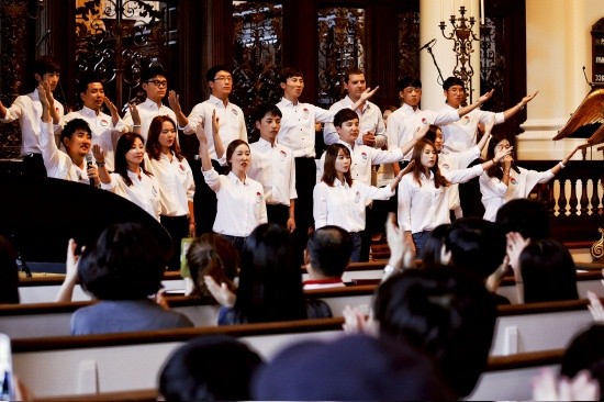 탈북자청년합창단 '위드유'와 하버드대 메모리얼 처치서 자선공연한 시간 동안 강연과 공연 이어져..현지 학생들, 뜨거운 환호로 화답