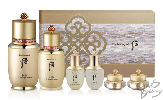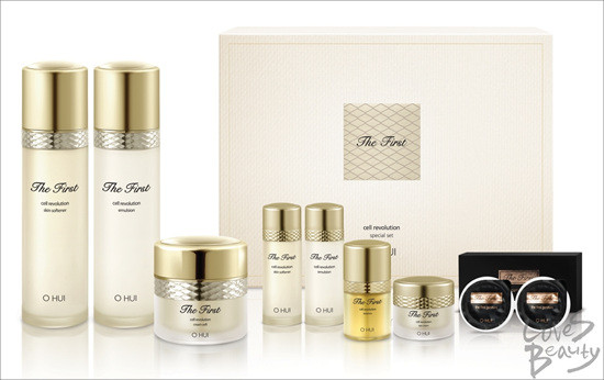 [후 비첩 자생 에센스]는 피부 스스로 살아나게 하는 자생의 능력을 담고 있는 라인으로, 궁중 한방처방의 3대 비방에서 비롯된 [공진비단], [경옥비단], [청심비단] 등의 3가지 처방에 생명력의 근본이 담긴 [초자하비단]이라는 궁중처방이 합쳐진 고기능 한방 에센스다.피부 스스로 자생할 수 있는 주요 성분들이 들어 있어 중년 이후 피부의 탄력과 보습, 모공 등이 고민인 여성들에게 부드러운 피부 결, 밝은 피부 톤 등을 선사한다.비첩 자생 에센스(45㎖), 비첩 자생 에센스(20㎖) 정품 2종과 화현 밸런서, 화현 로션, 화현 에센스, 화현 크림 증정품 4종으로 구성돼 있다. 18만 원대.▲ LG생활건강, 오휘 더퍼스트 3종세트 -