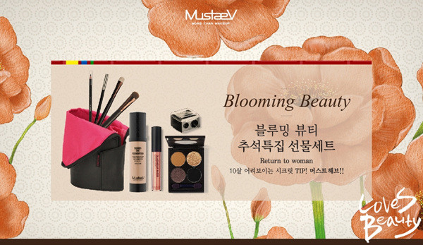 60여 년간 세계 유명 브랜드와 함께 제품을 개발, 공급한 경험을 바탕으로 론칭되어 현재 국내 정상급 아티스트들의 사랑을 받고 있는 <머스테브(대표 온윤성)>는 9월 한 달간 추석특집 선물세트를 판매한다.이번 선물세트는 10년은 더 젊어 보일 수 있는 아름다움을 꽃피워 줄 머스트 해브 아이템을 최대 30%까지 할인된 가격으로 제공한다.헤어 라인과 주름을 커버해 10년을 되돌리는 [블루밍 뷰티 선물세트]는 머스테브의 베스트셀러 제품이자 세월의 흔적을 감쪽같이 가려줄 제품들로 구성됐다. -