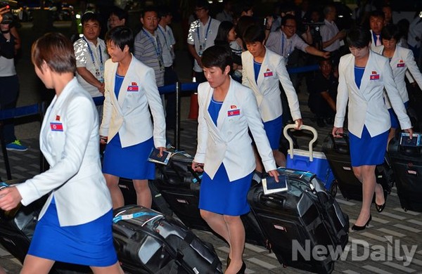 북한선수단 94명이 인천공항으로 입국했다.인천아시안게임에 참가하는 북한 선수단 선발대 94명(선수단81명, 기자10명, 심판3명)이 11일 오후 고려항공편으로 인천국제공항을 통해 대한민국 땅을 밟았다.이날 입국한 북한 선수단 선발대는 장수명 조선민주주의인민공화국 올림픽위원회(NOC) 대표와 임원, 심판진, 의료진, 기자단을 포함해 축구, 조정 관련 감독, 심판, 선수 등으로 구성됐다. 선수단은 인천공항 도착 후 경찰 에스코트를 받아 인천시 구월동에 위치한 선수촌으로 이동했다.북한 선수단은 오는 10월 5일까지 6차례에 걸쳐 Tu-204, An-148 등의 여객기를 타고 인천공항으로 입국할 예정이다. 인천공항으로 들어오는 북한 선수단은 총 262명이다.인천아시안게임은 오는 19일부터 10월 4일까지 16일간 인천을 비롯한 경기도 하남시, 고양시, 안산시, 부천시, 안양시, 수원시, 화성시와 충청북도 충주시, 서울특별시 양천구 등에서 열린다.☞관련기사