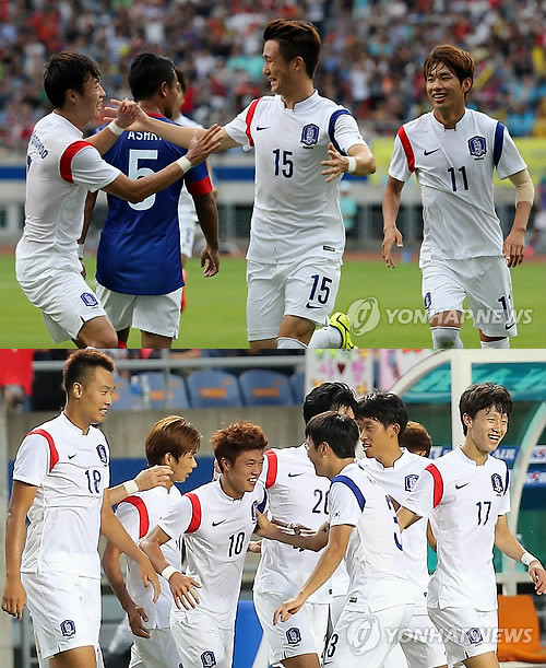 한국이 말레이시아에 완승을 거두며 아시안게임의 서막을 통쾌하게 열었다.이광종 감독이 이끄는 한국 아시안게임 남자축구대표팀은 14일 오후 5시 인천문학경기장서 열린 A조 예선 1차전에서 말레이시아에 3-0으로 완파했다.이날 한국은 전반 26분 터진 임창우의 헤딩 선제골을 시작으로 후반 33분 김신욱의 추가골, 후반 36분 김승대의 쐐기골에 힘입어 3-0으로 일찌감치 승부를 결정지었다.김신욱을 원톱으로 앞세운 한국 대표팀은 초반부터 공격을 퍼부었고 전반 27분 코너킥 상황에서 수비수 임창우가 먼저 헤딩슛으로 골문을 열었다.후반 33분 김신욱과 김승대가 박스 안에서 이대일 패스를 주고받은 뒤 김신욱이 오른발로 말레이시아의 골망을 갈랐다. 4분 뒤에는 김신욱의 추가 골을 도왔던 김승대가 수비수 두 명을 제치고 쐐기골을 넣었다.한편, 한국은 오는 17일 오후 8시 안산와스타디움에서 사우디아라비아와 조별예선 2차전을 치른다.[한국 말레이시아 완승, 사진=연합뉴스]