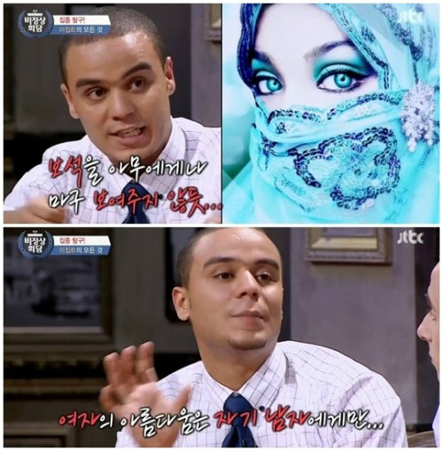 새미가 '비정상회담'에 출연해 이집트 대표 새미가 출연해 히잡에 대해 설명했다.
