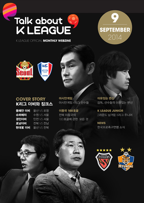 한국프로축구연맹은 17일 K리그 공식 웹진 'Talk about KLEAGUE' 9월호를 발간했다. 'Talk about KLEAGUE' 9월호 커버스토리에서는 K리그 5대 더비(슈퍼매치, 경인더비, 동해안더비, 호남더비, 현대 家더비)의 역사와 각 팀별 징크스를 분석해 제공한다.