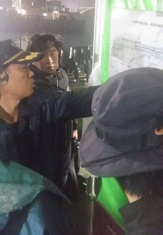 팀이 구성됐다. 기자를 리드하는 메인 다이버는 인천 해양경찰서 특공대 양재석 경장이었다. 그는 공수특전사 스쿠버 요원 출신으로 전역 후 산업 잠수사로 활동하다 해경에 투신한 30대 중반의 친구다. 기자를 엄호하는 임무를 맡은 페어 다이버는 같은 특공대 소속의 이경학 경장으로 학창시절 수영 국가대표 선수였으며 해군 SSU를 나왔다. 이들과 함께 임무를 브리핑 받았다. 임근조 과장과 박광호 팀장이 세월호 수색 계획도 앞에서 브리핑해 주었다.
