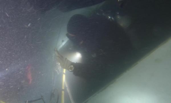오후 10시26분 入水, 視界는 5m, 선체는 매끈했다.