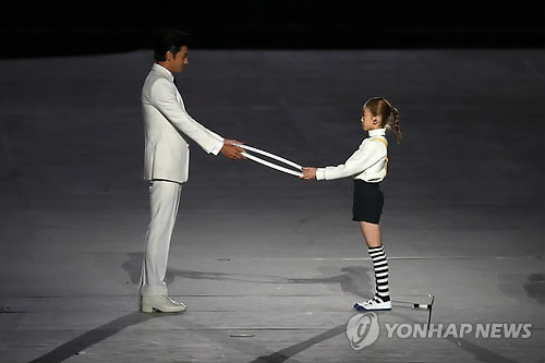 '2014 인천아시안게임 개막식'에 배우 장동건이 등장했다.19일 오후 '평화의 숨결, 아시아의 미래'를 슬로건으로 내건 '2014 인천 아시안게임' 개회식이 인천광역시 인천 아시아드주경기장에서 열렸다.이날 88년 서울올림픽 당시 화제가 됐던 굴렁쇠 소년 영상이 공개된 뒤 리듬체조 선수인 '굴렁쇠 소녀' 김민(인천 청일초) 양이 나타나 굴렁쇠를 굴렸다.김민 양은 굴렁쇠를 굴리다 굴렁쇠를 놓쳤고,장동건이 이를 받았다. 장동건은 소녀에게 굴렁쇠를 건네고 자리를 떴으며, 이어 김민 양을 비롯해 어린 학생들이 등장해 굴렁쇠 퍼포먼스를 펼쳤다.한편, 2014 인천아시안게임은 10월 4일 폐회식까지 16일간 일정으로 진행된되며, 한국은 금메달 90개 이상, 5회 연속 종합 2위가 목표다.['아시안게임 개막식' 장동건 굴렁쇠 퍼포먼스, 사진=연합뉴스]