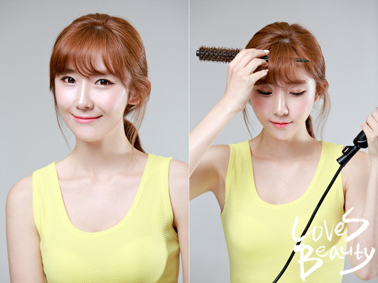 2. 앞머리 길이는 눈과 눈썹 사이로 맞추고 드라이어를 이용해 앞쪽으로 둥글게 말아준다.
