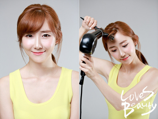 1. 드라이어로 앞머리를 얼굴 안쪽으로 만다.