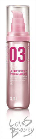 모델은 앞머리 스타일의 마무리로 아모스프로페셔널의 [리페어포스 테라피 라이트 오일]을 사용했다.이 제품의 주요성분은 아르간, 동백, 호호바씨, 마카다미아씨, 쌀겨, 포도씨오일이 들어간 6가지 오일 콤플렉스다.보통 오일은 기름지기 때문에 앞머리에 바르면 안 되지만, [리페어포스 라이트 오일]은 너무 가볍고 산뜻해서 뜨는 잔머리, 부스스한 앞머리를 윤기 나고 탄력 있게 마무리 해준다.2~3회 펌핑 후, 스타일링한 앞머리에 머릿결을 고르듯이 발라 주면 된다.[사진 = 아모스프로페셔널]
