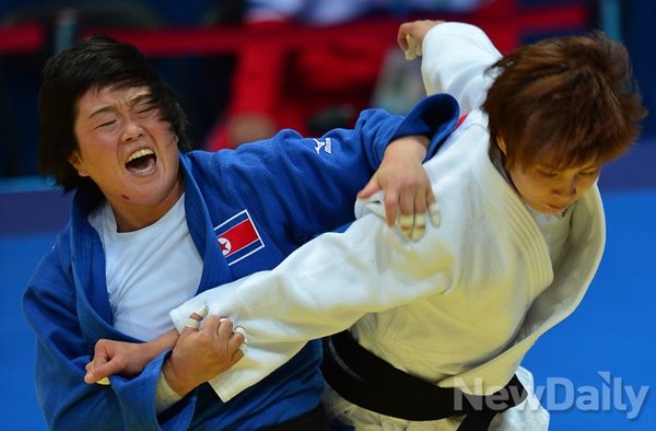 [인천AG] 안간힘 쓰는 북한여자 유도선수