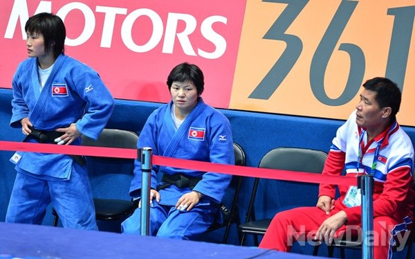 [인천AG] 여자 유도 단체전, 4강 탈락에 차가운 북한 벤치분위기