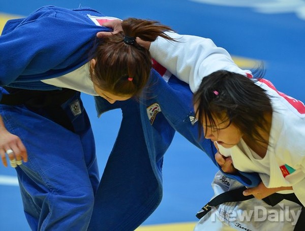 23일 오후 인천 도원체육관에서 열린 [2014 인천 아시안경기대회] 여자 유도 단체전에서 대한민국 대표팀은 몽골을 상대로 3-2으로 힘겹게 승리를 하며결 승에 진출해 은메달을 확보했다. 앞서 열린 남자 유도 단체전 경기는 몽골을 상대로 5-0으로 승리했다.