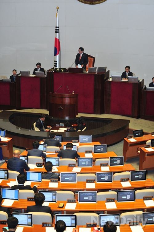 이날 본회의는 정의화 의장의 모두발언 후 산회를 선포, 오는 30일 본회의를 재소집해 법안처리 하기로 결정했다.