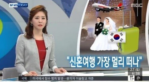 신혼 여행 가장 멀리 떠나는 나라로 한국이 1위에 올랐다.페이스북은 치근 전 세계 페이스북 사용자들의 '체크인' 정보를 바탕으로 신혼부부들의 허니문 트렌드를 공개했다.조사 결과 신혼여행을 위해 가장 먼 거리를 이동한 나라는 한국으로, 조사 대상 71개국 중 1위를 차지했다. 한국인 신혼부부의 이동 거리는 평균 약 6천437㎞로 일본인의 15배에 달했다.이어 2위는 이탈리아가 올랐고 카타르, 아랍에미리트(UAE) 순이다. 일본은 약 400㎞로 서울-부산 간 거리 밖에 되지 않았다.가장 인기 있는 신혼여행지는 미국 라스베이거스가 차지했으며, 미국의 라하이나와 호놀룰루가 그 뒤를 이었다. 미국을 제외한 최고 인기 신혼여행지는 멕시코의 플라야 델 카르멘인 것으로 나타났다.[신혼 여행 가장 멀리 떠나는 나라, 사진=MBC 뉴스 영상 캡처]