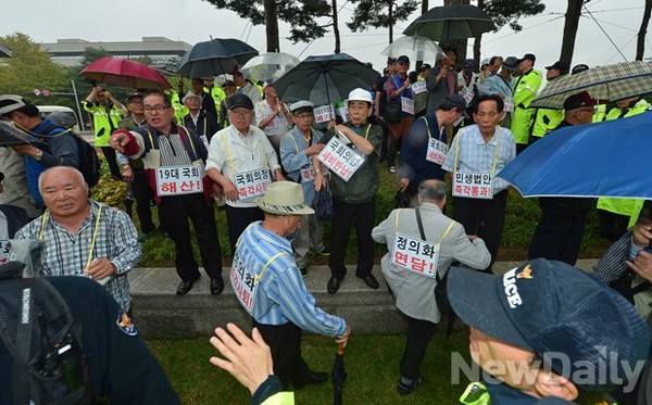 [포토] 정의화 의장 면담을 요구하며 국회찾은 어버이연합