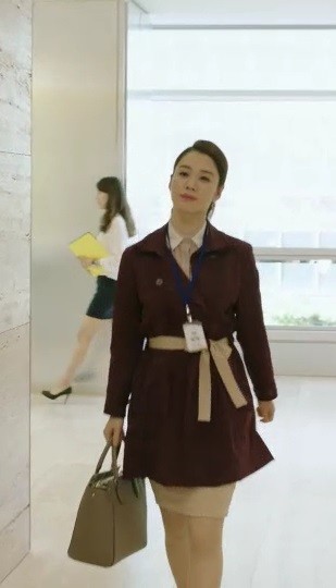 KBS 2TV 주말 드라마 <가족끼리 왜 이래>에 출연 중인 배우 김현주가 가을 분위기 물씬 풍기는 출근길 패션을 선보였다.지난 28일 방송된 13회에서 차강심(김현주 분)은 집주인과 세입자의 관계로 문태주(김상경 분)를 재회하게 된 모습이 그려졌다.이 장면에서 김현주는 버건디 색상의 트렌치 코트에 베이지 색상의 벨트를 더해 가을 출근길에 잘 어울리는 오피스룩을 완성했다.