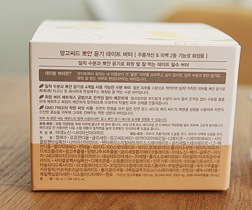 # 더페이스샵 망고씨드 뽀얀 윤기 데이트버터밀착 수분과 뽀얀 윤기로 4계절 화장 잘 받는 피부로 완성시켜주는 수분 버터. 끈적임 없이 매끈하게 피부에 녹아들어 수분을 촘촘하게 채워줘 메이크업이 매끈하게 밀착된다.100% 천연 식물성 망고버터와 망고 추출물, 스위트 체리씨드 추출물이 주름 개선과 미백 2중 효과를 돕는다. 7無(파라벤, 벤조페논, 변성알코올, 트리에탄올아민, 타르색소, 동물성 원료, 설페이트) 제품으로 크림 단계 혹은 메이크업 전 단계에 사용한다.# 총평■ 엄정여 편집장(40대 초반, 건성)[텍스처] 약간 되직한 휘핑크림 같은 제형이지만 막상 발랐을 때 무거운 느낌은 없다.[흡수력&밀착력] 피부에 펴 바르면 생크림처럼 사르르 녹아들면서 매끈하게 발린다. 꼼꼼하게 펴 바르면 버터가 녹는 것처럼 피부에 흡수된다.[보습력&유수분 밸런스] 바르는 즉시 촉촉함이 느껴질 정도로 보습력은 뛰어나지만 시간이 지나면서 유분기가 많이 올라오는 편.[윤기] 피부 톤을 약간 보정해 주면서 과하지 않게 반짝반짝 윤기가 난다.[총평]일단 2030 여성들의 마음을 사로잡을 수 있는 예쁜 네이밍에 감탄. 용기는 스패츌러를 포함해 속 뚜껑에 하트 모양의 보호캡 손잡이가 있어 위생적으로 사용이 가능하다.익숙한 과일향이 나며 진주가루와 티타늄옥사이드가 함유돼 발랐을 때 약간의 펄감과 함께 백탁현상이 느껴진다. R사의 컬러 크림처럼 펄이 과해 따끔거리고 눈물이 날 정도는 아니지만 눈가가 좀 시린 편.많은 양을 사용하면 메이크업 시 때 밀림 현상이 생기는 데다 피부에 빨리 흡수되지 않아 적당량을 얇고 꼼꼼하게 펴 발라줘야 한다.화장을 잘 먹게 해주는 버터크림이라지만 이 제품을 바르고 나서 쿠션을 사용했더니 오히려 화장이 들뜨면서 모공이 살아났다. 거기다 오후가 되니 번들거림까지 심해졌다. 양 조절에 신경 써 봐도 이 제품을 바른 후 메이크업 제품을 바르면 화장도 잘 안 먹고 겉도는 느낌을 받았다. 데이트버터를 발랐을 때보다 그냥 기존에 사용하던 기초제품과 자외선 차단제를 바르고 메이크업을 하면 훨씬 더 예쁘게 화장이 된다는 것이 함정!메이크업 바로 전에 바르기 보다는 차라리 나이트 크림이나 환절기 수분크림 대용으로 사용하는 게 좋을 듯.[만족도] ★★☆■ 최은혜 기자(30대 초반, 지복합성)[텍스처] 무게감이 느껴지는 버터 같은 제형.[흡수력&밀착력] 제형이 무거워서 걱정했지만 흡수력과 밀착력은 좋은 편.[보습력&유수분 밸런스] 보습력은 확실히 좋았지만 그만큼 유분기도 꽤 있다.[윤기] 자세히 봐야 느껴질 정도의 은은한 윤기.[총평]지복합성 피부라 무게 있는 버터 느낌의 제형이 부담스러웠지만 의외로 흡수력이 좋았다. 세안 후 스킨을 바르고 이 제품 하나만으로 스킨케어를 끝내도 될 만큼 보습력이 있는 편. 또한 물광 메이크업 같은 과도한 광택이 아닌 매우 은은한 윤기를 표현해주기는 한다.그러나 이 제품의 치명적인 단점이 있었으니...그것은 굳이 지금 잘 쓰고 있는 다른 제품을 두고 따로 살 필요를 못 느끼겠다는 점이다. 재구매하거나 지인에게 강력 추천하기에는 드라마틱한 장점이 없다. 제품 광고에서처럼 데이트 같은 중요한 날 뭔가 달라 보일 만큼의 효과를 느끼지는 못했다.[만족도] ★★★■ 심은혜 기자(20대 후반, 복합성)[텍스처] 그냥 일반 크림 같았다.[흡수력&밀착력] 평소 바르는 크림과 비슷하긴 했지만 약간 겉도는 느낌이 들었다.[보습력&유수분 밸런스] 보습력에서 큰 효능을 느끼지 못했다. 처음 발랐을 때 꽤 유분기가 느껴지기는 했지만 시간이 지나면서 사라지고 촉촉한 느낌도 남아있지 않았다.[윤기] 막 발랐을 때는 피부에 윤기가 돌지만 시간이 지나면 사라졌다. 위에 파운데이션이나 쿠션류를 바르면 윤기가 좀 더 지속되기는 했지만 그 시간도 길지는 않은 듯.[총평]안색크림 같은 효과를 기대했으나 그보다는 스킨케어 끝에 바르는 피니셔 같다는 인상을 받았다. 단독으로 사용했을 때 특별히 뛰어난 보습력이라든지 윤기 효과를 느끼기에는 뭔가 부족했다. 제품 모델인 수지 나이 대 여성들이나 10대들이 사용하면 만족하며 쓰려나.데이트버터를 바른 후 쿠션을 사용하면 그냥 쿠션만 사용했을 때보다는 피부 톤도 좀 더 밝아 보이고 약간의 윤기가 더해지는 것을 느끼기는 했지만 기존에 사용하던 다른 제품으로도 충분히 비슷한 효과를 보고 있었기 때문에 굳이 바꿔 쓰고 싶은 생각이 들지 않았다. 또 이 제품을 바르고 나서 쿠션을 사용했을 때 약간 밀리는 현상이 있어서 아쉬웠다.[만족도] ★★■ 최지민 기자(20대 중반, 복합성)[텍스처] 정말 버터 같은 제형을 기대했으나 약간 되직한 정도의 크림 질감.[흡수력&밀착력] 나름 손의 온기로 꼼꼼히 흡수까지 시켰건만 메이크업 제품을 덧발랐을 때 약간의 밀림 현상이 있었다.[보습력&유수분 밸런스] 바를 때는 꽤 촉촉하게 느껴졌다. 하지만 되직한 텍스처에 대한 내 기대감이 컸던 탓인지 펴 바르고 나서 타 수분크림을 발랐을 때의 쫀쫀함 같은 것은 느끼기 어려웠다.[윤기] 피부가 환해지고 윤기 있어지는 것에서 소비자 평가 별 네 개를 받았다는데 솔직히 나는 뽀얀