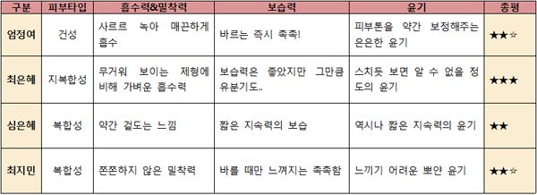 무난한 보습력과 은은한 윤기, 메이크업 밀림 현상은 아쉬워