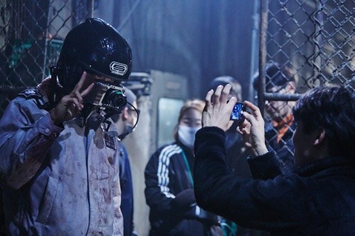 정유미는 좁은 터널을 기거나 구르는 것은 물론 강도 높은 액션 연기를 하면서도 힘든 내색 없이 귀여운 미소와 포즈로 현장을 밝게 이끌기도 했다. -