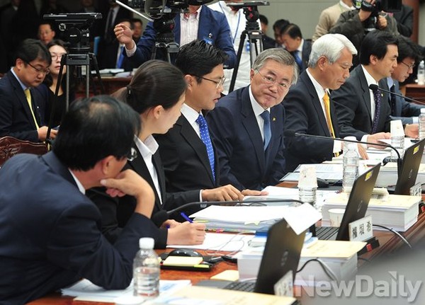 첫날 국감에서도 감기몸살을 이유로 질의를 하지 않았던 문재인 의원은 이날 얼굴이 퉁퉁 부은 상태로 나타나, 군 보안프로그램 결함과 예비군 총기관리 실태 부실 문제 등을 지적했다.
