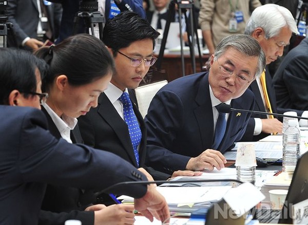 새정치민주연합 문재인 의원이 8일 서울 용산구 국방부에서 열린 국회 국방위원회 국정감사에 두 눈이 퉁퉁 부은 채로 등장해 눈길을 끌었다.