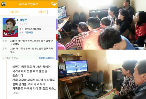 【뉴데일리 스포츠】'2014 인천 아시안게임' 정구 금메달리스트 김형준(24, 이천시청) 선수의 가족 응원사진이 뒤늦게 화제를 모으고 있다.해당사진은 소원성취 스마트폰 어플 '수르수르만수르'를 통해 공개된 것으로 "비인기종목 경기를 하는 동생을 응원해주세요"라는 김형준 사촌형의 바람으로 널리 알려지게 된 것.공개된 사진 속에는 TV가 아닌 인터넷 중계로 김형준 선수의 경기를 숨죽여 지켜보고 있는 가족들의 모습이 담겨 있다.지난 4일 막을 내린 인천아시안게임은 비인기종목 경기는 대부분 TV 중계가 되지 않았다. 특히, 정구는 전 종목을 석권했음에도 모든 경기를 인터넷 중계를 통해서만 볼 수 있었다.한편, 한국 정구의 차세대 간판스타 김형준 선수는 지난달 30일 인천 열우물경기장에서 열린 '2014 인천아시아경기대회' 남자단식 결승전에서 인도네시아를 4―0으로 꺾고 금메달을 목에 걸었다.[정구 김형준, 사진=수르수르만수르]