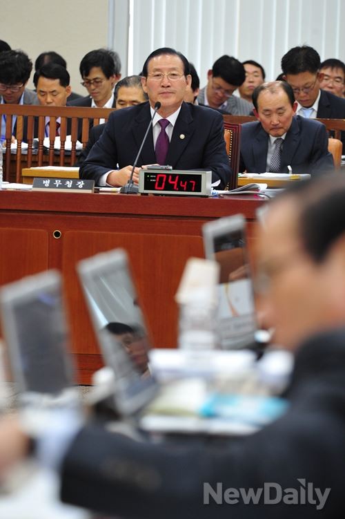[박창명] 병무청장이 10일 오전 여의도 국회에서 열린 국방위 병무청에 대한 국정감사에서 의원들의 질의에 답하고 있다.