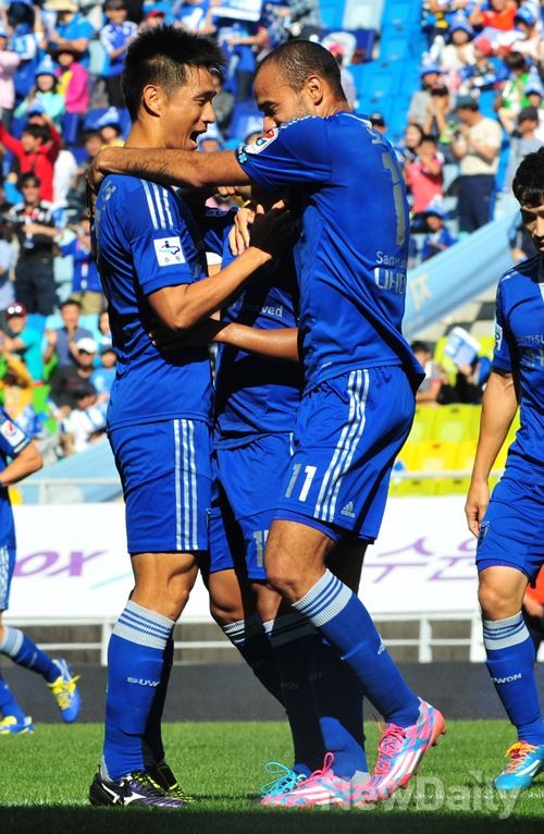 수원 삼성 블루윙즈가 11일 홈에서 열린 K리그 클래식(프로축구 1부리그) 전남 드래곤즈와의 31라운드 경기에서 2대1로 승리하며 소중한 승점 3점을 추가했다.수원 삼성 블루윙즈는 전반 13분 산토스의 선제골로 승기를 잡앞지만 후반 16분 전남 드래곤즈의 레안드리뉴가 동점골을 기록하며 승부를 윈점으로 되돌렸다.수원 삼성 블루윙즈는 후반 추가시간 산토스의 발 끝에서 극적인 결승골이 터지면서 2대1로 승리했다.리그 2위를 달리고 있는 수원 삼성 블루윙즈는 이날 승리로 선두귄 경쟁을 벌이고 있는 3위 포항 스틸러스와의 승점차를 더 벌렸다.승점 54점에서 이날 승리로 3점을 추가한 수원 삼성 블루윙즈는 인천 유나이티드에게 같은 날 발목 잡힌 포항 스틸러스(승점52)와 승점 5점차가 됐다.