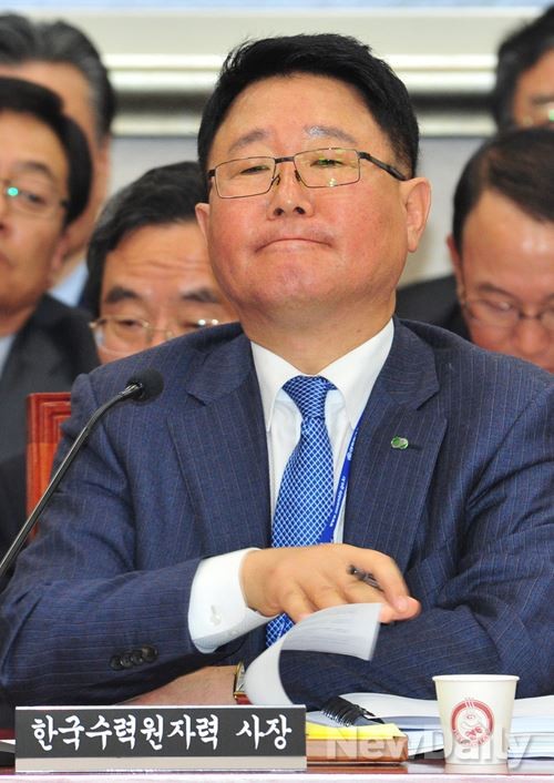 [조석] 한국수력원자력 사장이 17일 오전 여의도 국회에서 열린 산업통상자원위원회의 한국수력원자력에 대한 국정감사에서 의원들의 질의에 답하고 있다.