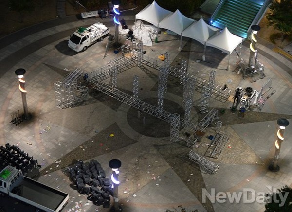 - ▲ 17일 오후 지하 환풍구 덮개가 붕괴돼 수 십명의 사상자가 발생한 경기도 성남시 분당구 판교테크노밸리 야외공연장 사고 현장.ⓒ 뉴데일리 정재훈기자