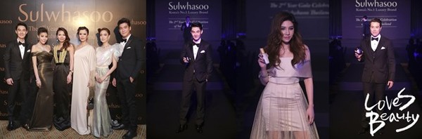 태국 주요 미디어와 연예인, 유통 관계자 등 200명이 참석한 가운데 열린 이날 행사는 설화수 브랜드의 철학과 역사를 보여주는 다양한 영상과 축하 패션쇼와 공연으로 채워졌다.특히 축하 패션쇼는 윤조에센스, 자음생크림, 자정미백에센스 등 태국에서 사랑 받는 설화수 대표 제품과 태국 인기 연예인 컨까녹 영사쿤(Kornkanok yongsakul), 언아파 푼쌉마니(Orn-arpa Poonsapmanee), 파푸안 추티몬 사꾼타이(Papeuan Chutimon Skulthai), 유키 우나완 탕카라바쿤(Yuki Unawan Tangkaravakoon), 난 아마라난드(Nan Amaranand)가 짝을 이뤄 진행됐다.모델로 분한 태국 톱스타들은 자신의 이미지와 어울리는 설화수 제품을 들고 멋진 워킹으로 무대를 누볐다. 기념행사의 대미는 태국 인기 가수 버린 분비숫(Burin Boonvisut)이 장식했다.[사진 = 설화수]