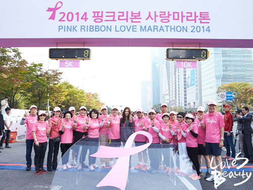 특히, 이번 핑크리본 사랑마라톤 서울대회는 아모레퍼시픽과 한국유방건강재단의 관계자뿐만 아니라 아이오페의 전속모델인 고소영 씨도 함께해 자리를 빛냈으며, 여성뿐만 아니라 여성의 소중한 유방건강을 생각하는 가족 모두가 참여해 [함께 보고, 즐기고, 나누는 축제의 장]으로 펼쳐져 눈길을 끌었다.이날 현장에서는 아모레퍼시픽 그린사이클 캠페인의 일환으로 화장품 공병을 활용해 제작된 핑크리본 대형 조형물, 덕성여대 김승민 교수의 핑크리본 작품 전시, 핑크리본 마술쇼 등이 풍성한 볼거리와 즐길거리를 선보였다.더불어 유방자가검진 교육, 무료 유방암 상담검진 등 유방건강 관리에 유용한 정보뿐만 아니라 유방건강에 대한 의식을 높이고자 뜻을 함께한 헤라(HERA), 아리따움, 페이스북, 금호타이어 등 핑크리본캠페인 후원 브랜드들의 다채로운 부대행사가 진행되어온 가족이 함께 여성의 건강한 아름다움을 생각해보는 뜻 깊은 자리로 펼쳐졌다.아모레퍼시픽그룹 성장지원실 김정호 상무는 “올해로 14년째를 맞은 핑크리본 사랑마라톤이 여성의 소중한 가슴 건강을 생각하는 모두의 페스티벌로 자리매김하게 된 데에는 건강한 나눔문화에 관심을 갖고 이 자리에 함께한 시민들 뿐만 아니라 의료진, 환우, 후원 기업을 비롯한 우리 사회 다양한 일원들의 헌신이 있기에 가능했다”고 밝혔다.이어 “아모레퍼시픽은 고객에게 큰 사랑을 지속적으로 받아온 기업으로서 앞으로도 진정성 있는 캠페인 활동을 통해 기업시민으로의 사회적 소임을 다하고, 여성들의 건강한 아름다움을 위한 사회공헌 활동에 앞장설 것”이라고 덧붙였다.[사진 = 아모레퍼시픽]