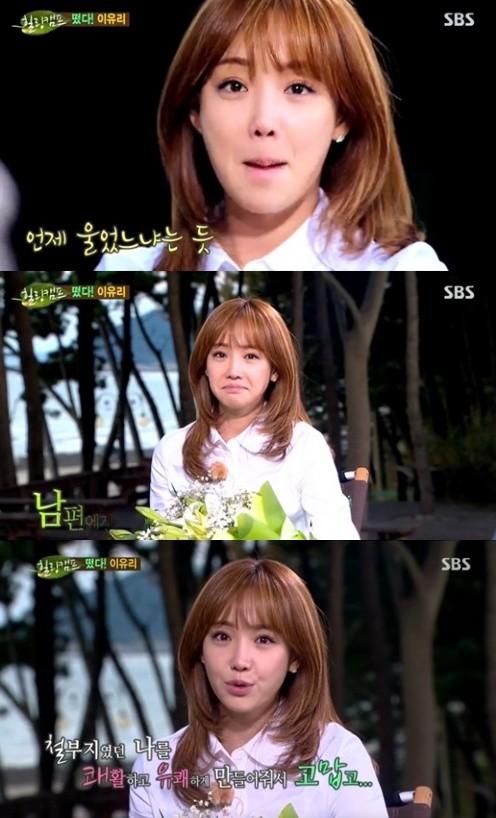 배우 이유리가 남편에게 애정을 듬뿍 담은 영상편지를 보냈다.이유리는 지난 20일 방송된 SBS '힐링캠프, 기쁘지 아니한가'(이하 '힐링캠프')에 출연해 남편과 오빠 동생 사이로 지내다 결혼에 골인하게 된 사연을 공개했다.이날 이유리는 남편의 깜짝 편지을 받고 눈물을 펑펑 흘렸다. 편지에는 "보고 있어도 또 보고 싶은 사람. 언제나 해맑고 소녀같은 모습은 내 가슴을 꽉 채워 잔잔한 미소가 내 인생에 은은히 흐른다. 하나님이 내게 주신 가장 빛나는 선물은 당신이다. 사랑합니다. 영원히"라는 내용이 담겨 있었다.이유리는 남편 편지에 화답해달라는 MC들의 제안에 흔쾌히 수락하며 카메라를 향해 영상편지를 띄웠다. 그녀는 "여보. 나랑 결혼해줘서 감사하하고 철부지였던 나를 쾌활하고 유쾌하게 만들어줘서 고맙다"고 전했다.이어 "이 세상 사람들이 내게 손가락질하는 날이 와도 언제나 든든한 내 편이 돼줄 여보가 있어서 감사하다. 우리 이렇게 행복하게 살아요"라고 덧붙여 훈훈함을 자아냈다.[이유리 남편, 사진=SBS '힐링캠프' 방송 캡처]