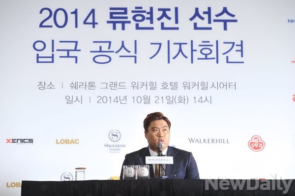 LA 다저스 류현진 선수가 21일 오후 서울 광진구 쉐라톤 그랜드 워커힐 호텔에서 공식 기자회견을 가졌다.
