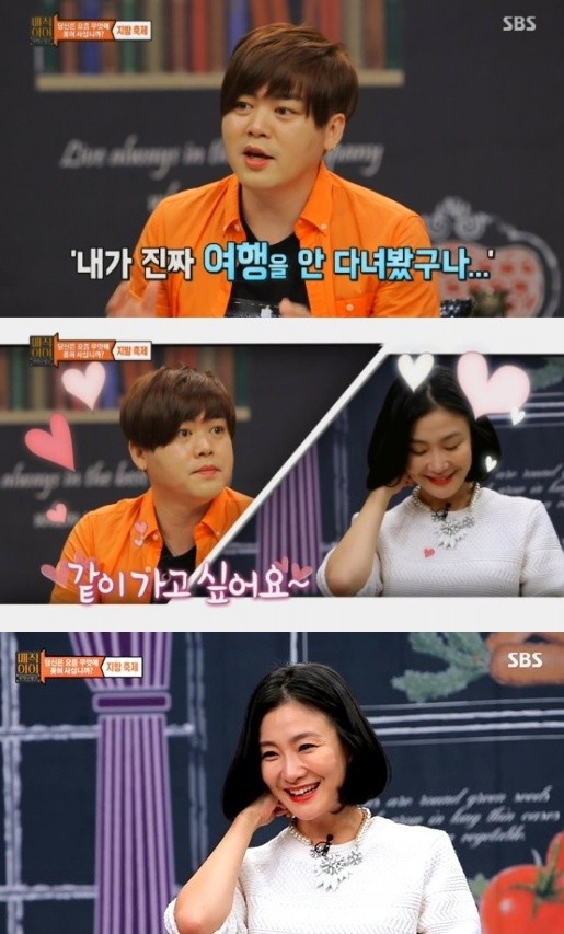 '매직아이' 문희준이 박효주에게 호감을 드러냈다.지난 21일 방송된 SBS '매직아이'에는 장현성, 최원영, 김명국, 박효주 등 드라마 '비밀의 문' 팀이 출연해 솔직한 입담을 뽐냈다.이날 박효주는 자신이 꽂혀 있는 것으로 '지방축제'를 꼽았다. 실제로 여러 지방축제를 찾아 다닌다고 밝힌 박효주는 남향당 새조개 축제, 경남 산청 한방약초 축제, 천북 굴 축제 등 다양한 지방축제와 특산 먹거리를 소개했다.이 과정에서 박효주는 직접 나서 출연진들의 시식을 돕는 등 싹싹하고 친절한 매력을 발산했다. 박효주의 매력에 끌린 MC 문희준은 박효주에게 "전형적인 여배우인 것 같다. 말씀이 너무 아름답다"고 말하는가 하면 30대인 박효주의 나이를 듣고 "몰랐다. 20대인 줄 알았다"고 너스레를 떨었다.또한, 박효주가 과메기 축제에 대해 언급하자 문희준은 '나는 과메기가 새인줄 알았다"며 "내가 모르는 음식들이 많다. 박효주와 같이 여행 가고 싶다"고 말해 핑크빛 기류를 형성했다.['매직아이' 문희준 박효주, 사진=SBS '매직아이' 방송 캡처]