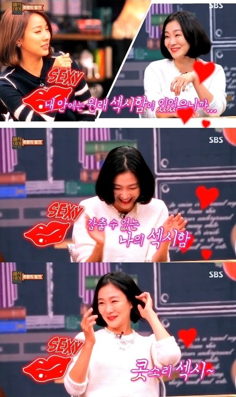배우 박효주가 섹시미를 어필했다.지난 21일 방송된 SBS '매직아이-취향의 발견'에는 장현성, 최원영, 김명국, 박효주 등 드라마 '비밀의 문' 팀이 출연해 솔직한 입담을 뽐냈다.이날 MC 문소리 "박효주가 예전에는 털털하고 보이시한 역할을 많이 맡았는데 이번에 '비밀의 문'에서 기생, 영화 '타짜2'에서는 마담 역할을 했다"고 밝혔다.이에 박효주는 "요즘 연기를 마음껏 즐기고 있다"며 "내 안에는 원래 섹시함이 있었다"고 말하며 웃었다. 그러자 MC 이효리는 "맞다. 그런 건 숨길 수가 없다"고 공감해 웃음을 자아냈다.이어 이효리는 "박효주의 섹시한 콧소리도 장난이 아니다"고 추켜세웠고, MC 김구라 역시 "정말 교태가 있네"라고 칭찬했다.['매직아이' 박효주, 사진=SBS '매직아이' 방송 캡처]