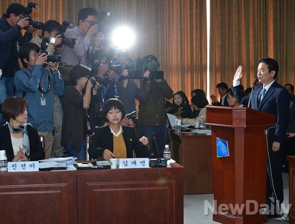 [2014국감] 국감에 앞서 선서하는 남경필 도지사
